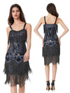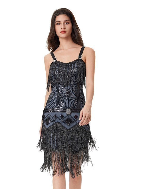 1920er Pailletten Kreuzweise Rücken Fransen Kleid