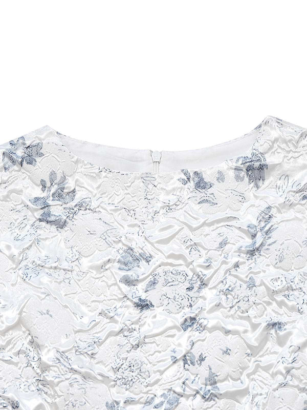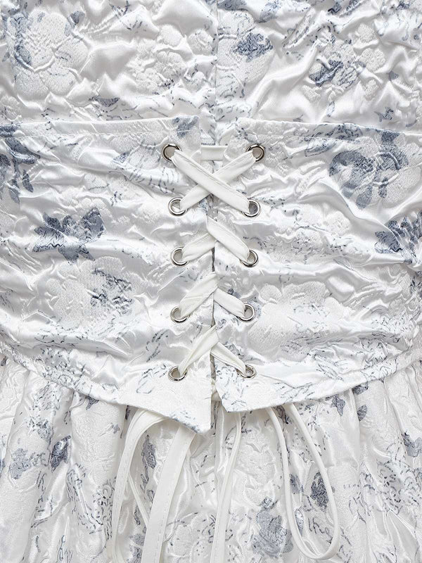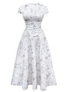 1940er Blumen Crinkle-Jacquard Schnürung Kleid