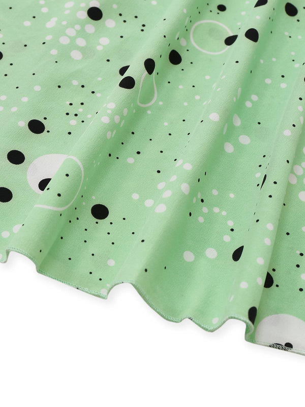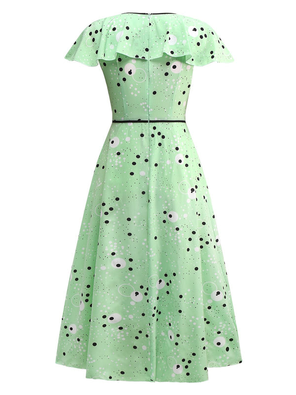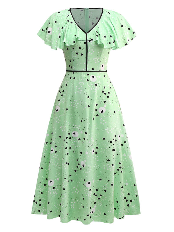 1940er Irregulär Punkte V-Ausschnitt Rüschen Kleid