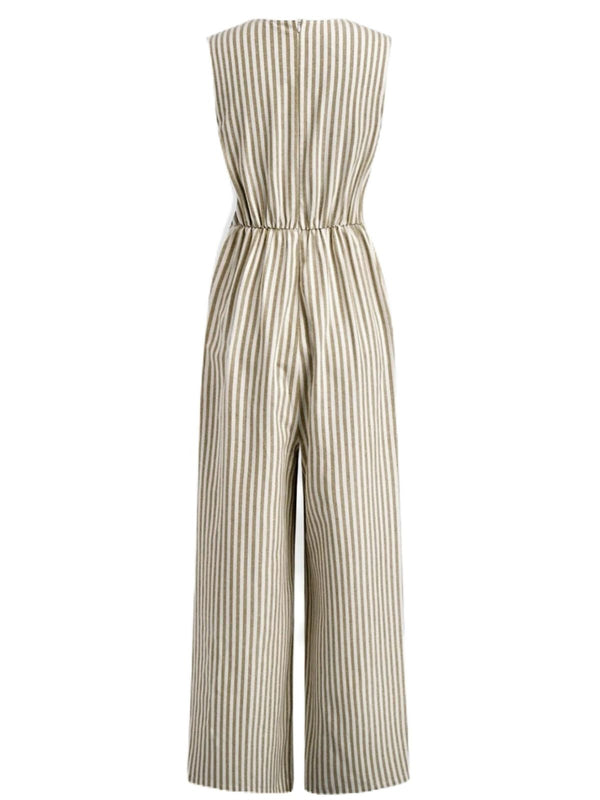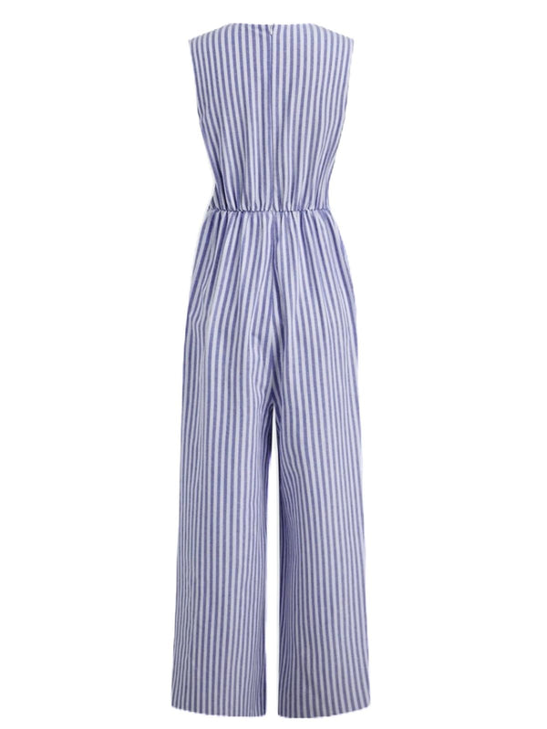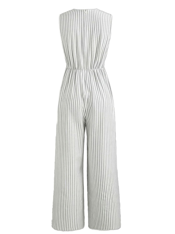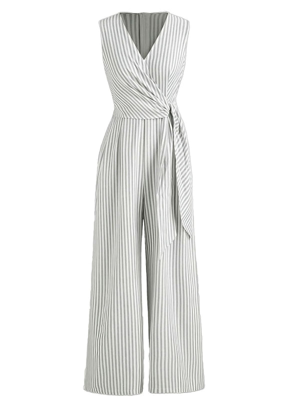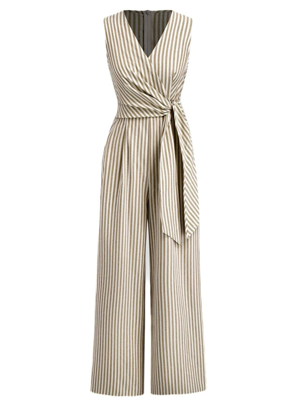 1940er V-Ausschnitt Streifen Taille-Tie Ärmellos Jumpsuit