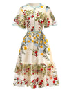 1940er Blumen Rüschen Spaghetti Träger Kleid