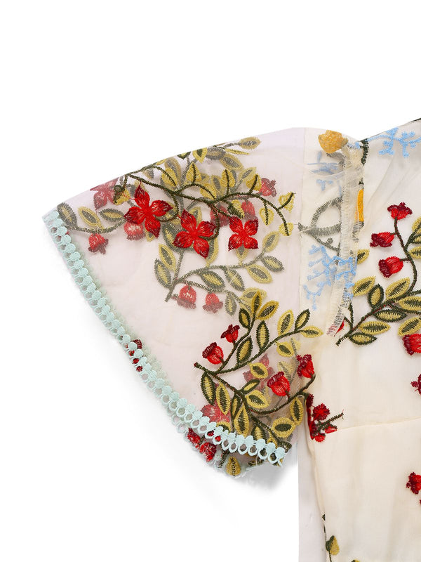 1940er Wasserlöslich Spitze Netz Stickerei Rüschen Kleid