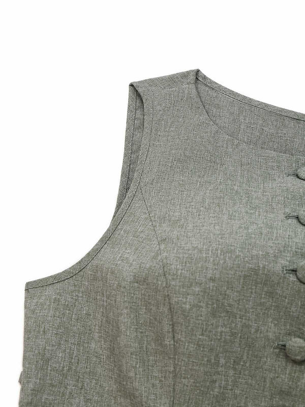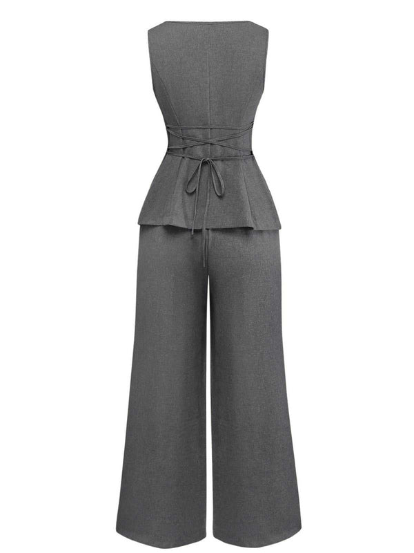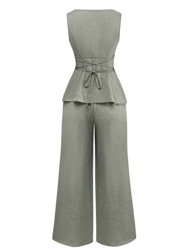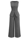 2PCS Solide 1940er Ärmellos Top & Weites Bein Hose
