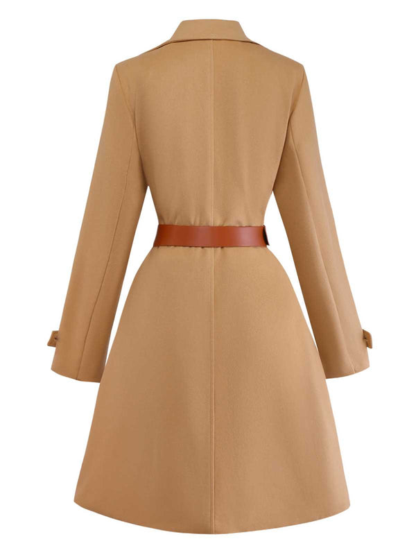 Khaki 1940er Revers Zweireihig Gürtel Mantel