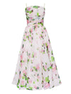 Multicolor 1940er Organza Blumen Spaghetti Träger Kleid
