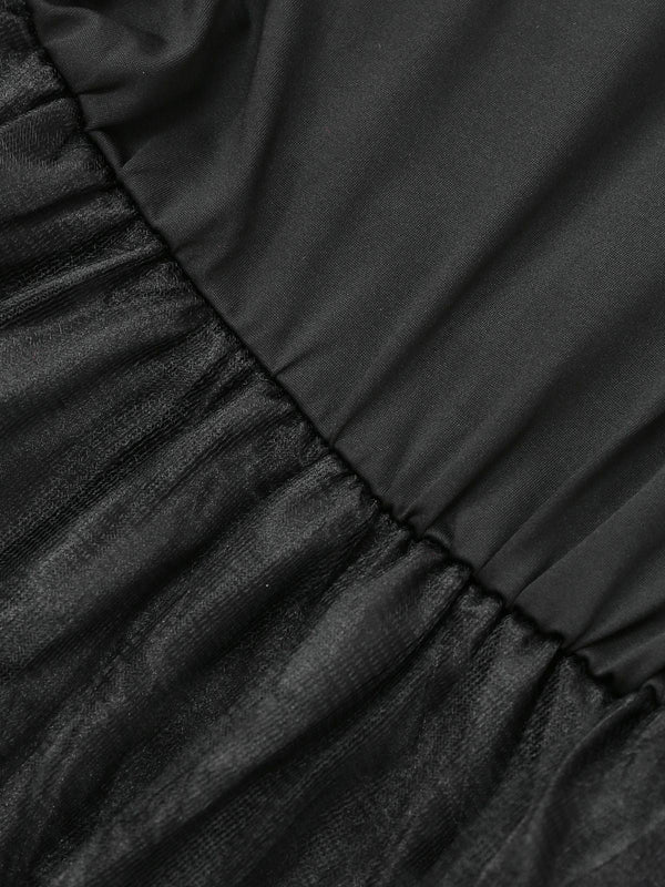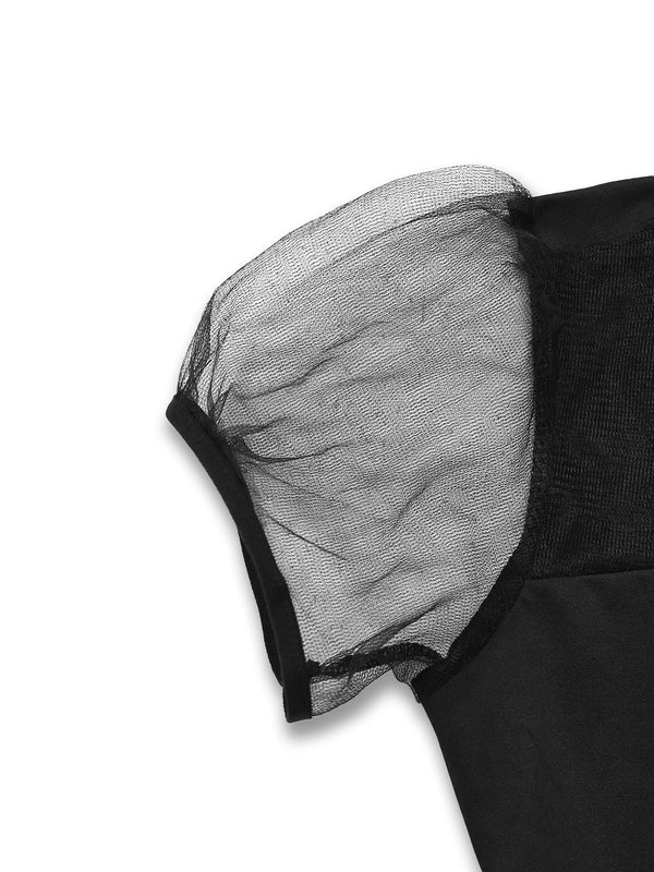 Schwarz 1940er Peter Pan Kragen Sheer Gürtel Tulle Kleid