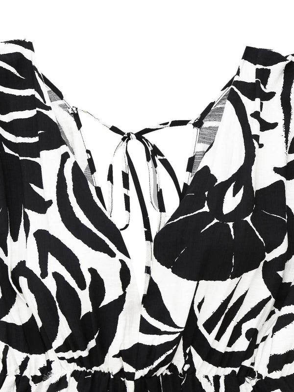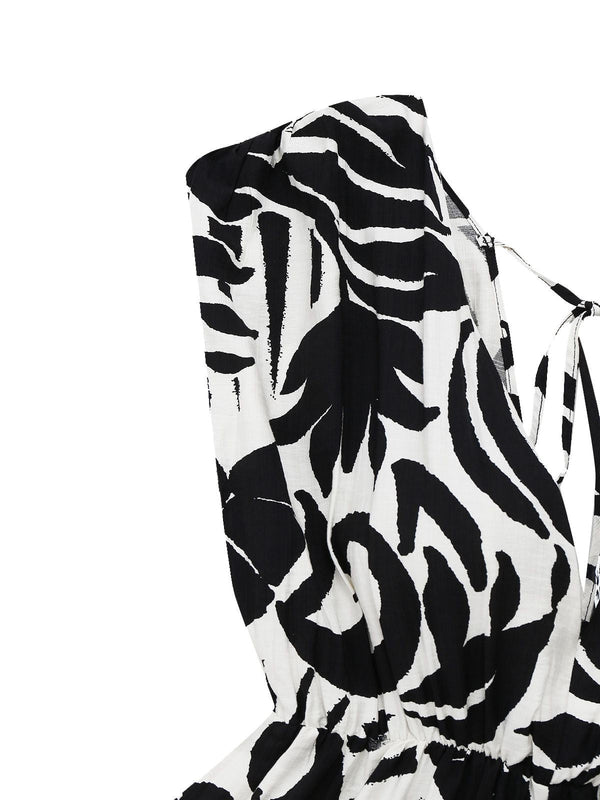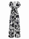 Schwarz 1940er Pflanzen Silhouette Fledermausärmel Jumpsuit