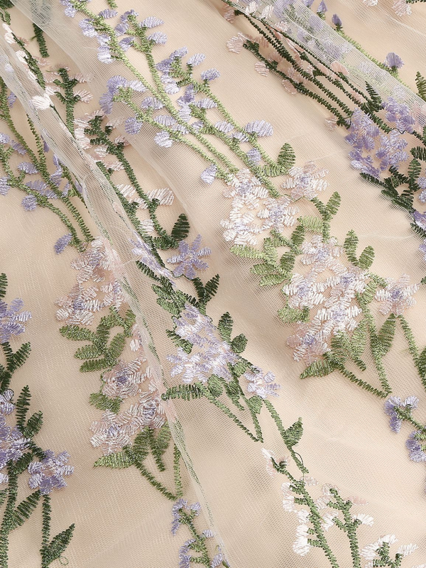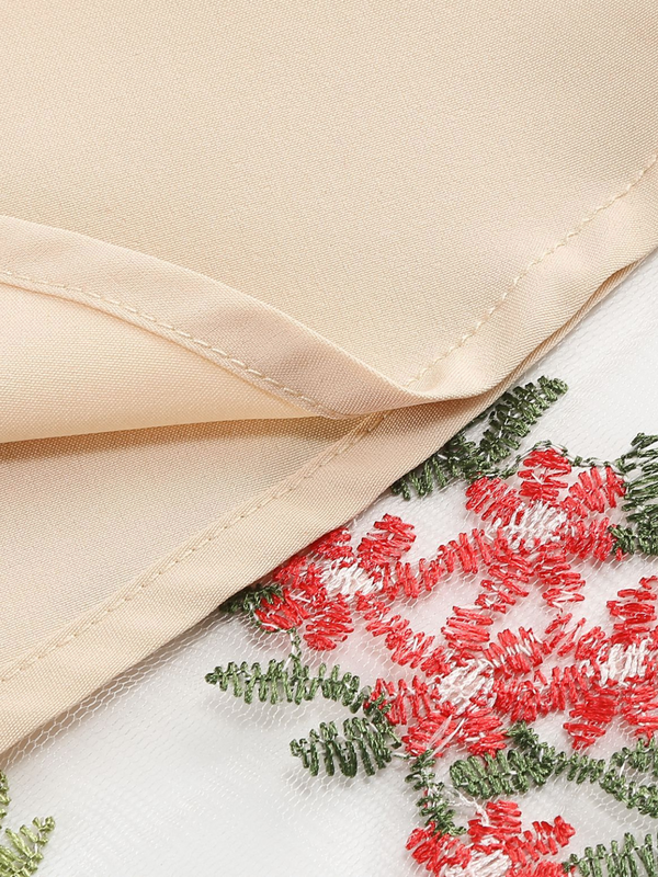 1950er Bestickt Netz Schnürung Herzförmiger Hals Kleid