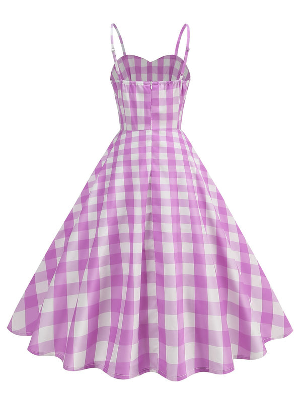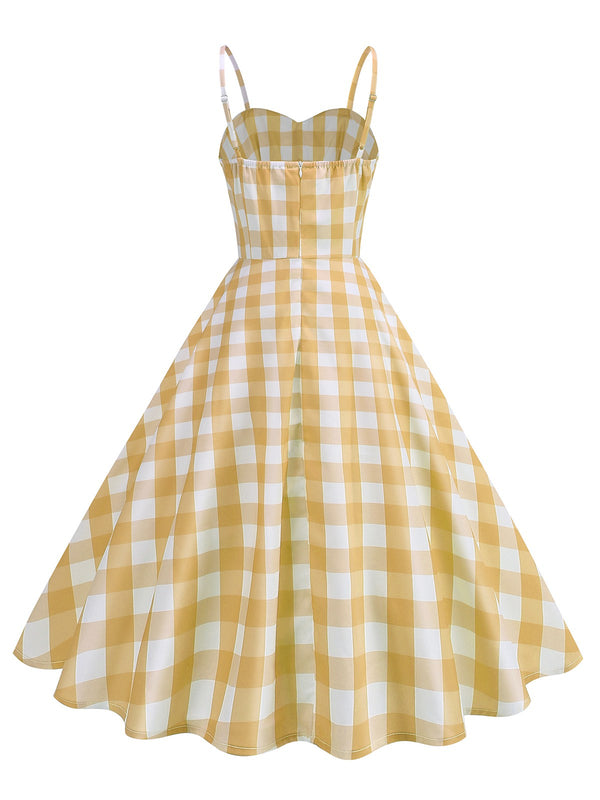 1950er Gerüschtes Spaghetti Träger Gingham Plaid Kleid