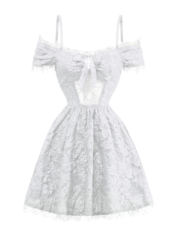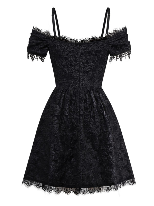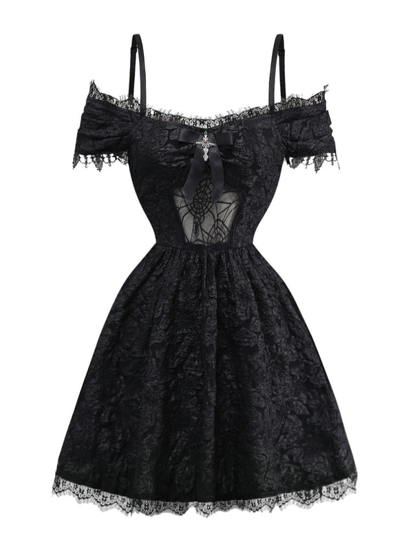 1950er Gothic Halloween Spinnennetz & Kreuz Strukturiert Kleid