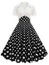 1950er Revers Polka Dots Patchwork Swing Kleid