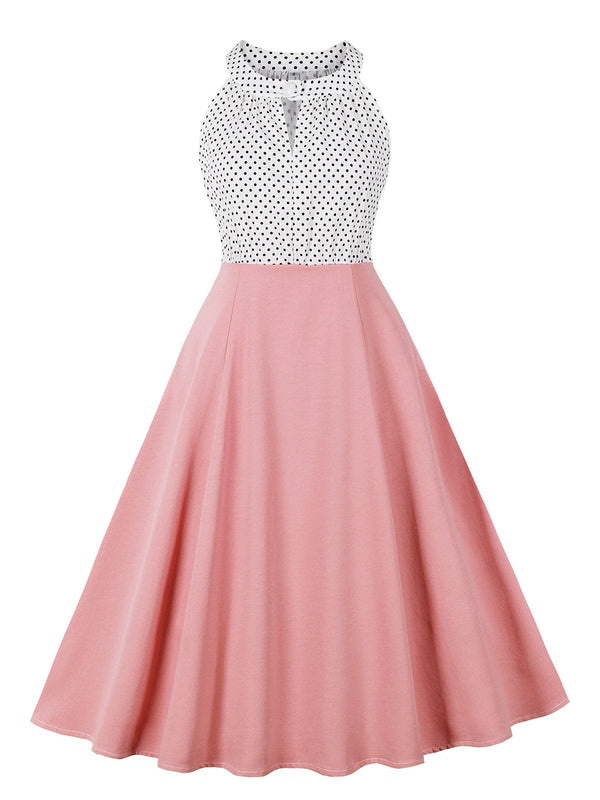 1950er Tupfen Patchwork Halter Rundhals Kleid