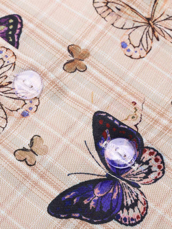 Grün 1930er Krawattenhals Plaids Schmetterlinge Jumpsuit
