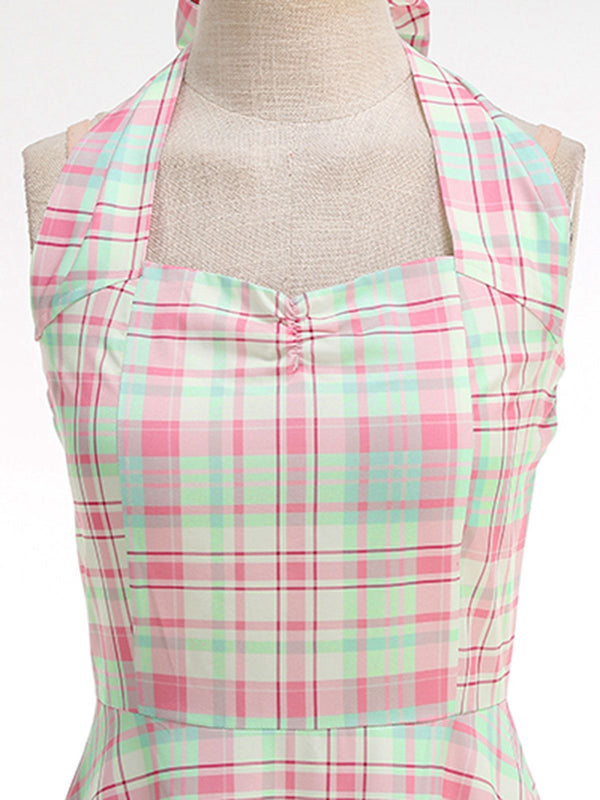 Hellrosa 1950er Kariert Halter Rückenfrei Kleid