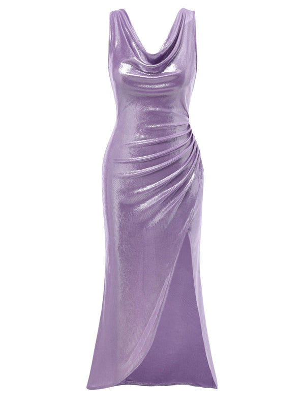 Lavendel 1960er Wasserfallausschnitt Hoher-Schlitz Perlglanz Kleid