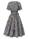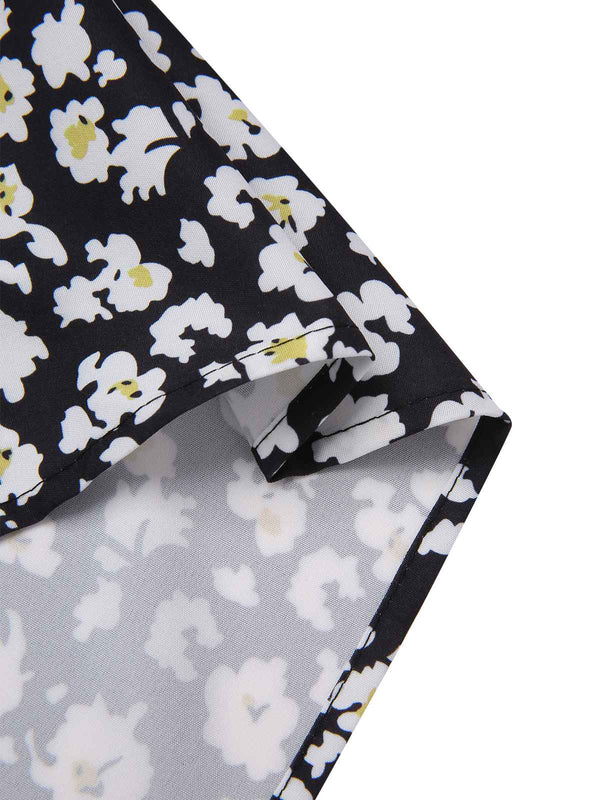 Schwarz 1950er Kleine Blumen V-Ausschnitt Schnürung Dress