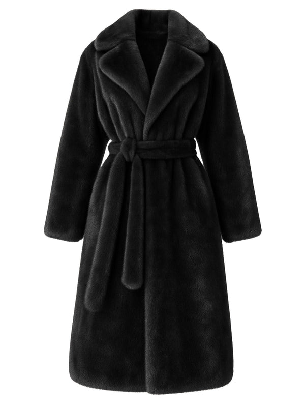 1950er Solide Revers Kunstpelz Pelz Robe Mantel