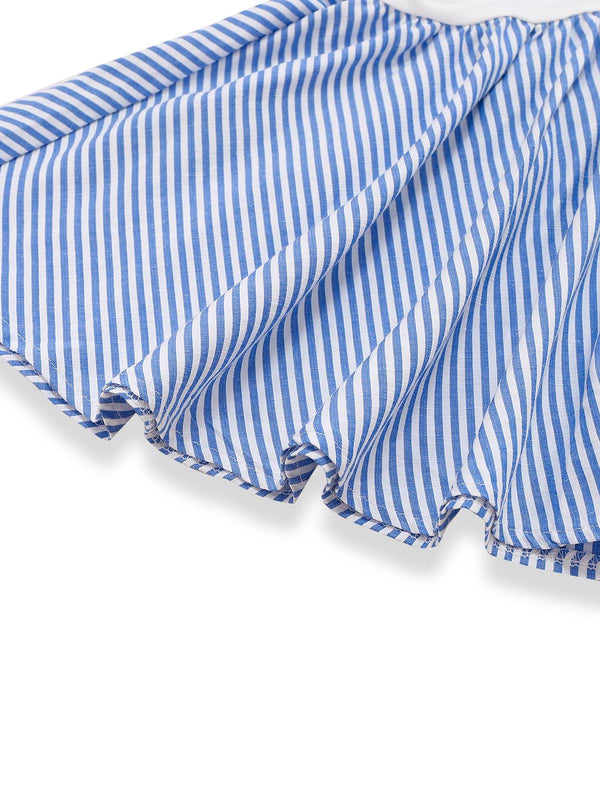 Blau 1950er Streifen Patchwork Plissiertes Kleid