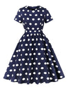 Dunkelblau 1950er V-Ausschnitt Plaid Patchwork Kleid