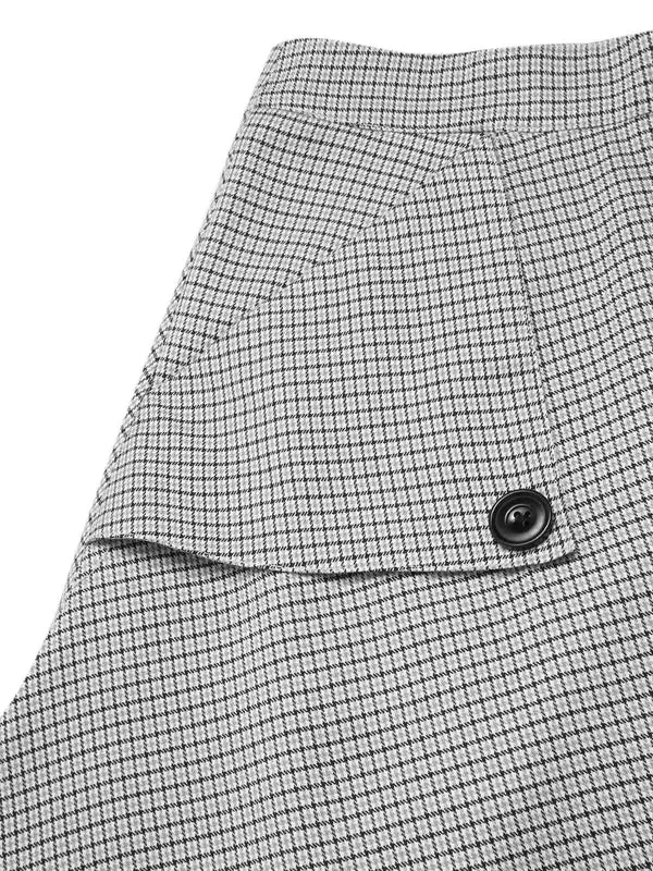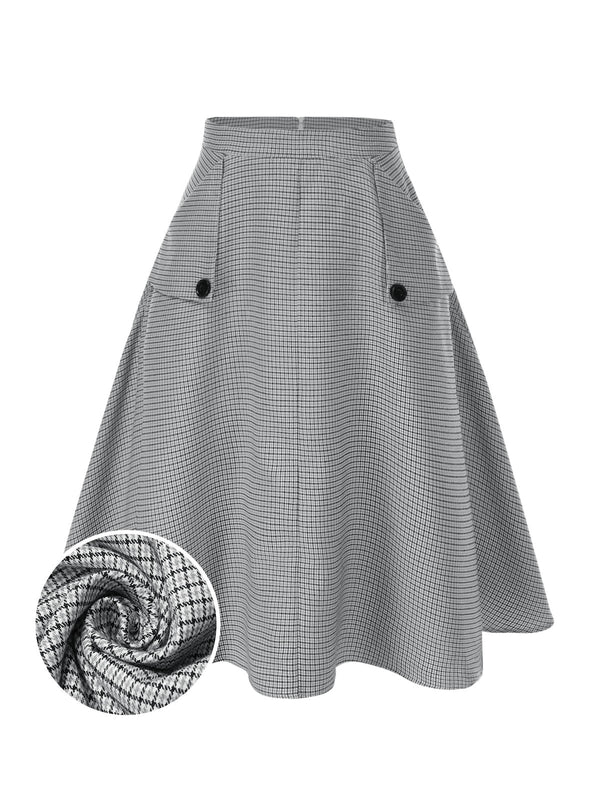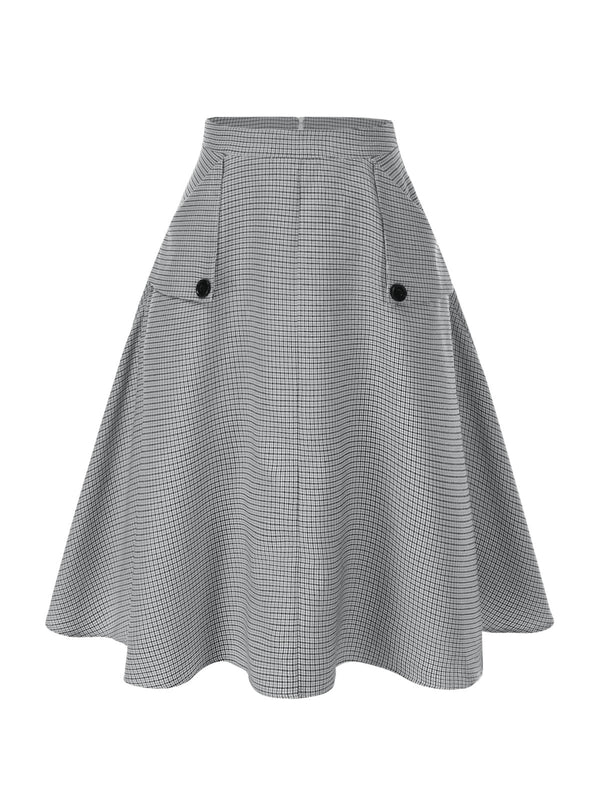 Grau 1950er Hohe-Taille Plaids Tasten Rock