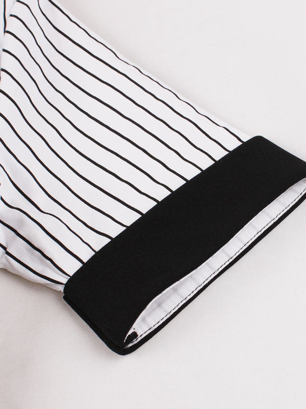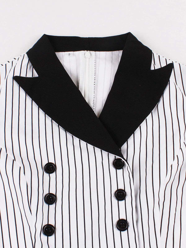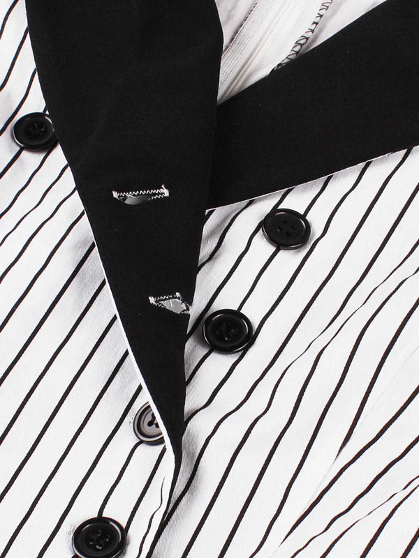 Schwarz 1950er Vertikal Streifen Patchwork Revers Kleid