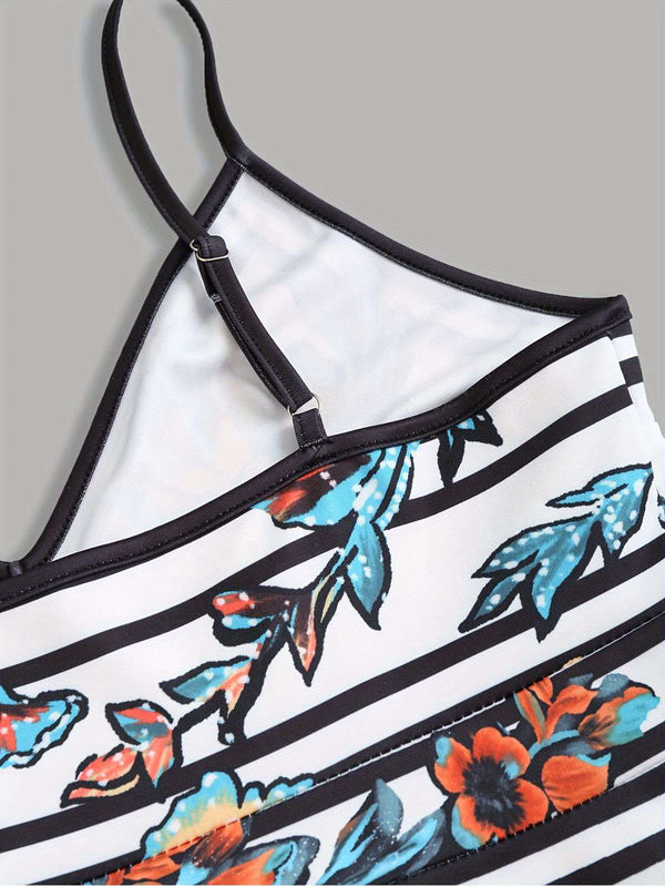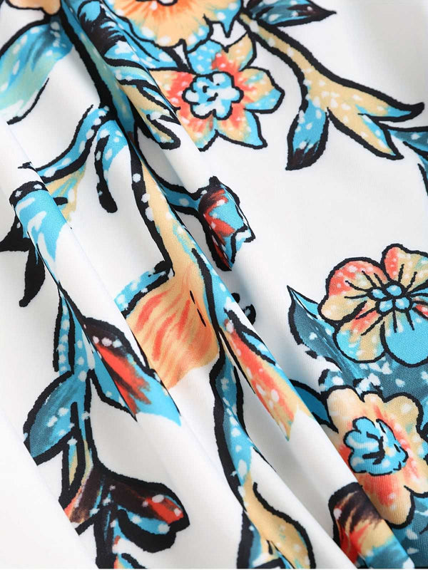 [Übergröße] Multicolor 1950er Blumen Spaghetti Träger Kleid