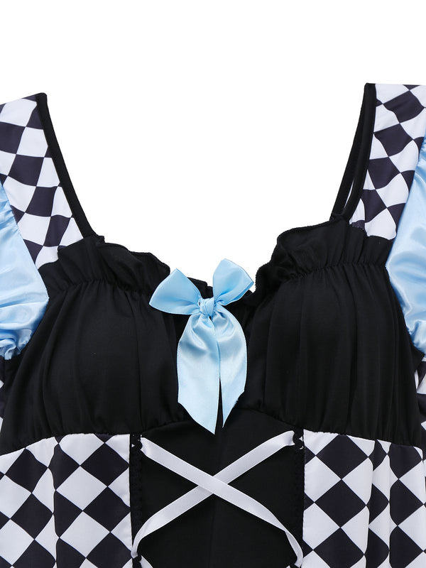 Blau 1960er Alice Puffärmel Apron Kleid