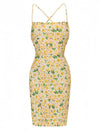 Gelb 1960er Zurück Schnürung Gerüscht Blumen Kleid