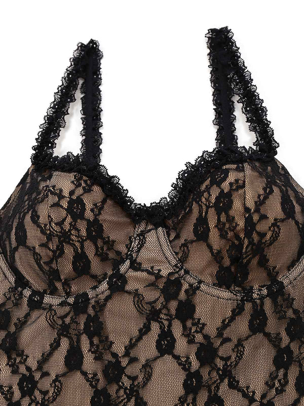 Khaki 1960er Spitze Patchwork Spaghetti Träger Enges Kleid