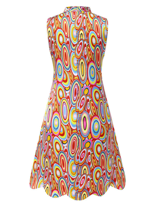 Multicolor 1960er Perle Tasten Ärmellos Kleid