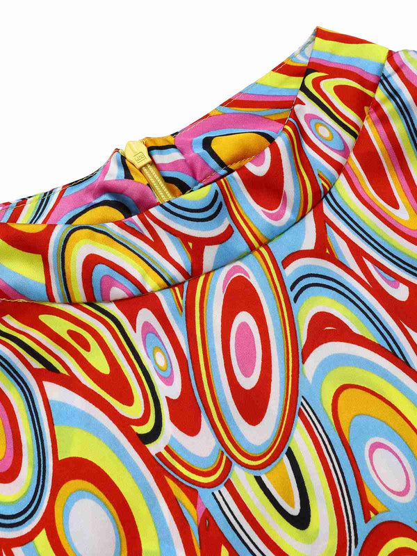 Multicolor 1960er Kerbkragen Blumen Stempel Kleid