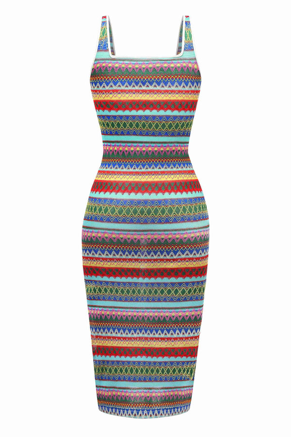 Multicolor 1960er Spaghetti Träger Seitenschlitz Bleistift Kleid