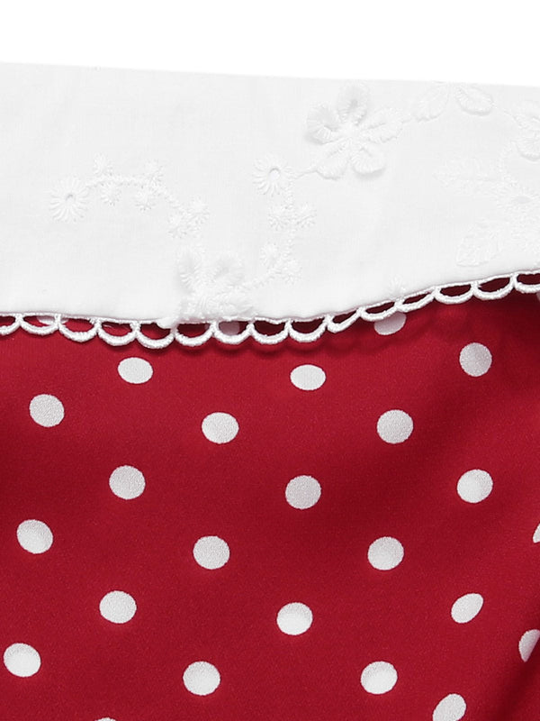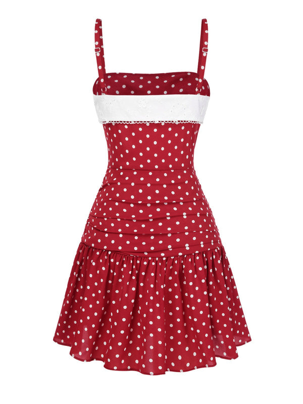 Rot 1960er Spitze Patchwork Tupfen Plissiertes Kleid