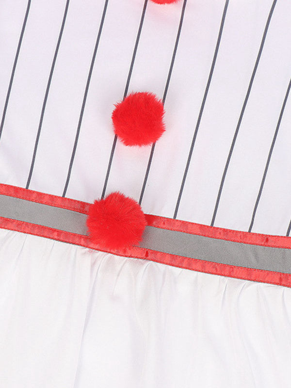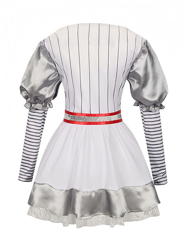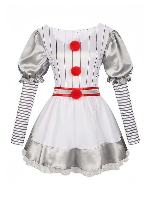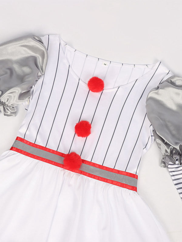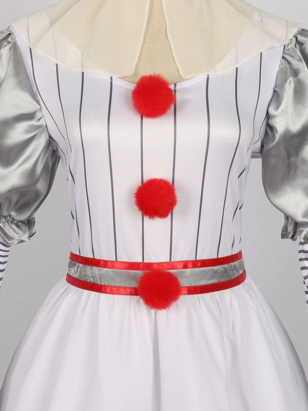 Silber 1960er Halloween IT Pennywise Streifen Puffärmel Flaumig Kleid