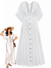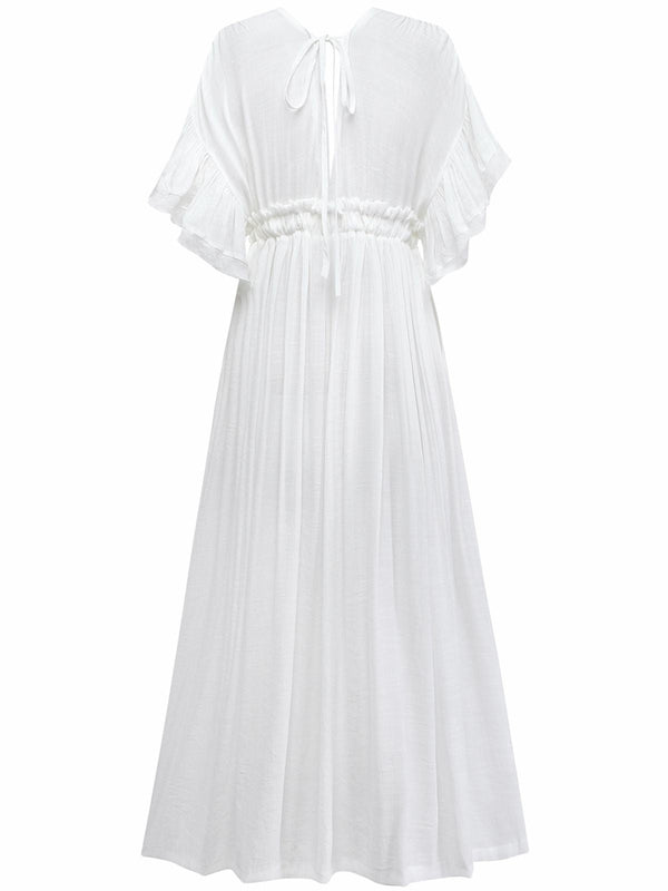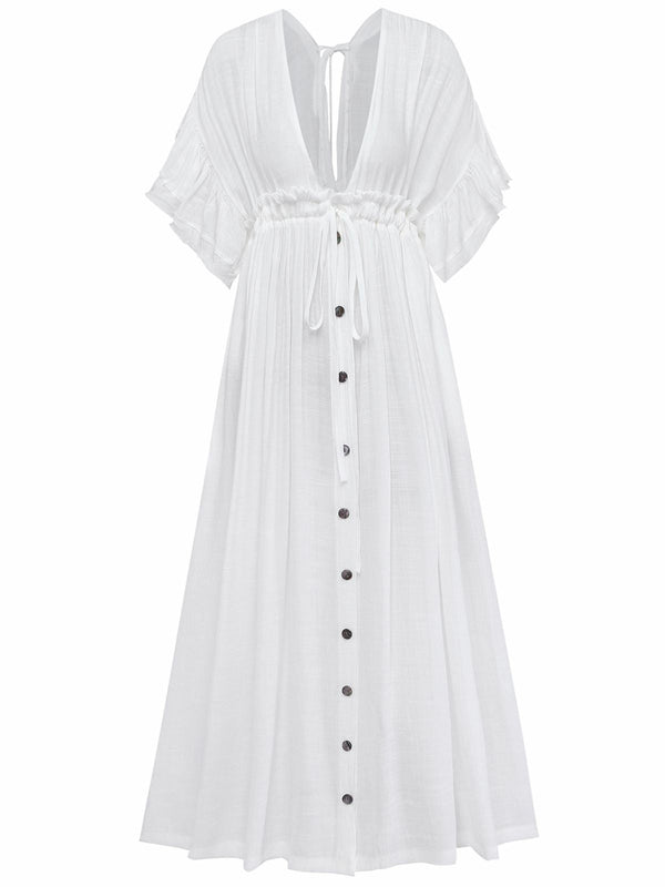 1930er Solide V-Ausschnitt Viskose Noppen Strand Cover-Up