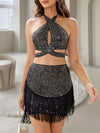 2PCS Schwarz 1960er Pailletten Rand Halter Hohl Top & Rock