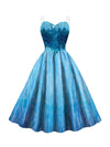 Blau 1950er Halloween Elsa Pailletten Schneeflocke Träger Kleid