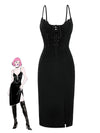 Schwarz 1960er Fledermaus-Kragen Samt Schlitz Kleid