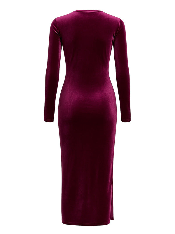 Weinrot 1960er Samt Taillenbindung Enges Kleid