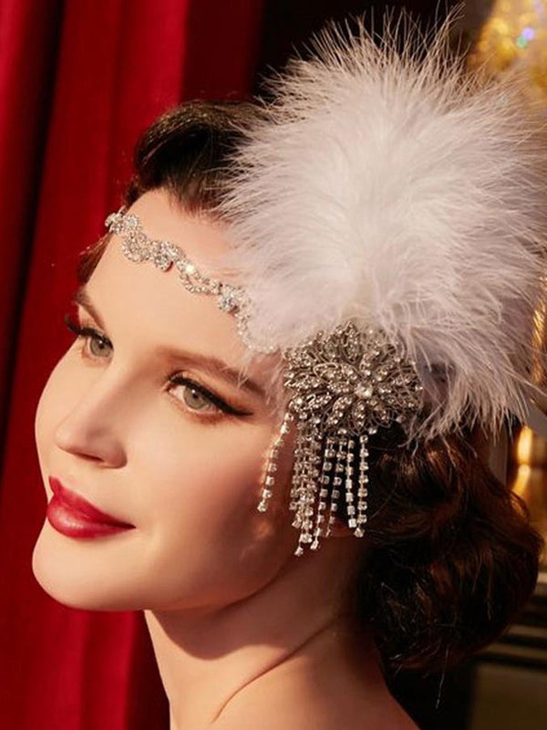 1920er Gatsby Feder Strassstein Blumen Kopfschmuck