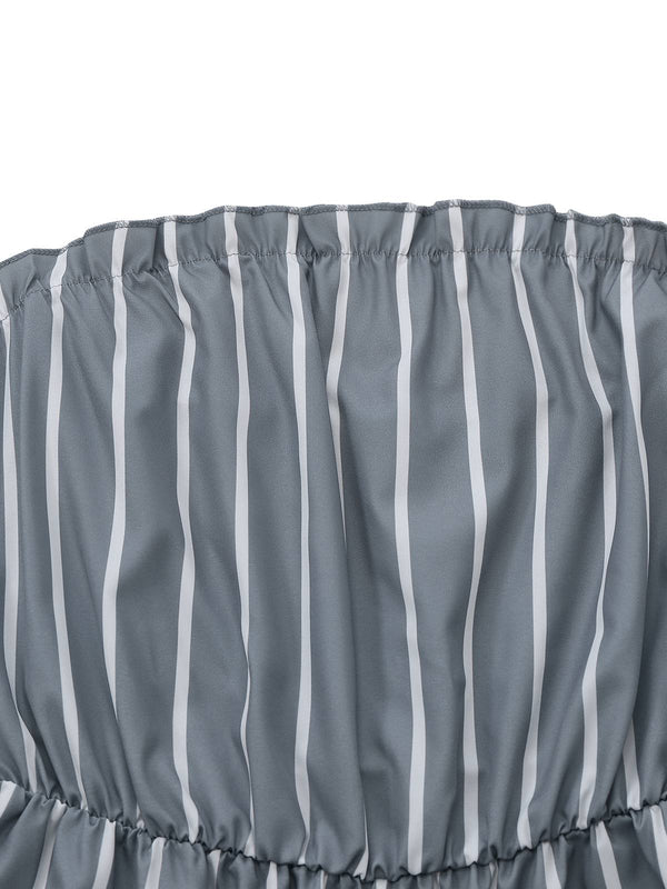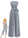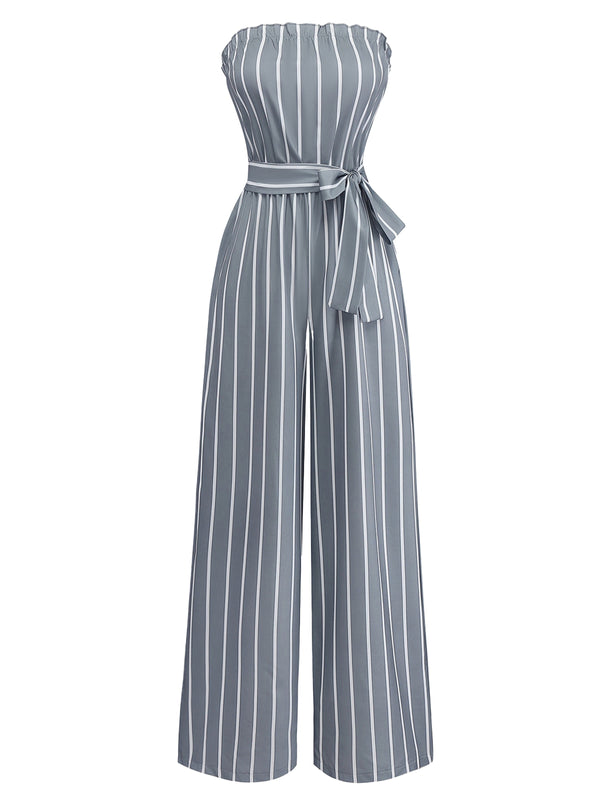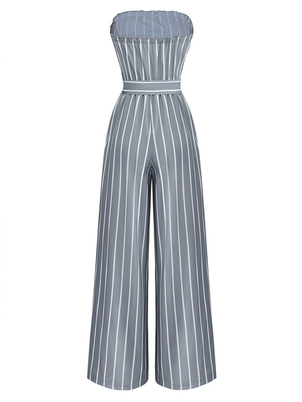 Grau 1930er Trägerlos Streifen Gegürtet Jumpsuit