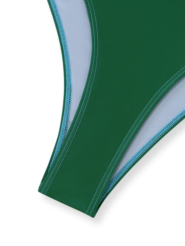 Grün 1930er Gerafft Einteiliger Badeanzug