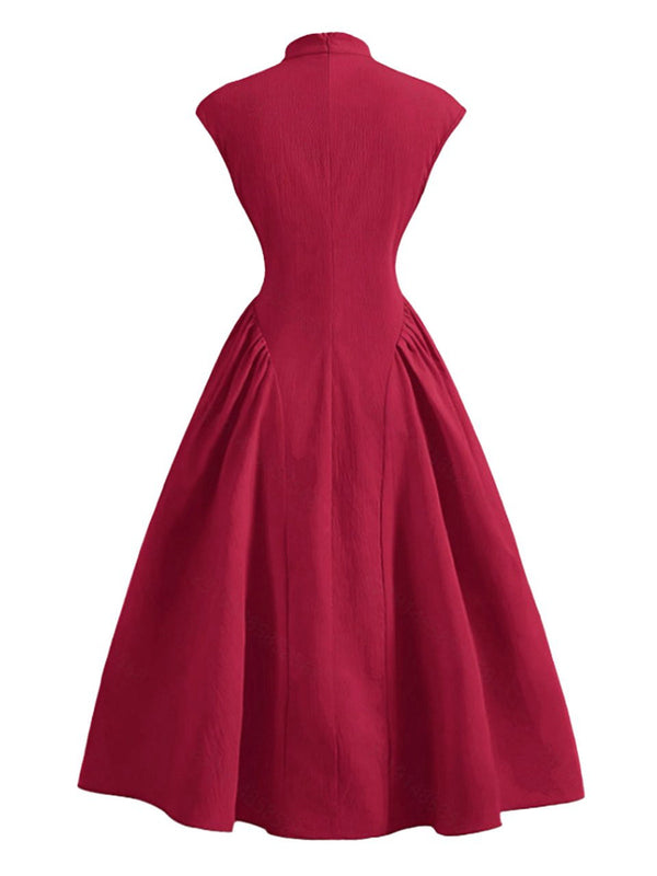 Rot 1950er Flügelärmel Steh Kragen A-Linie Kleid