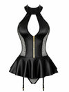 Schwarz 1960er Lackleder Durchsichtig Sexy Mini Kleid