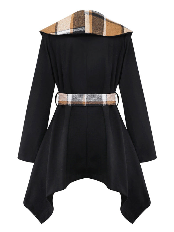 Schwarz 1960er Revers Kariert Kunstwolle Jacke
