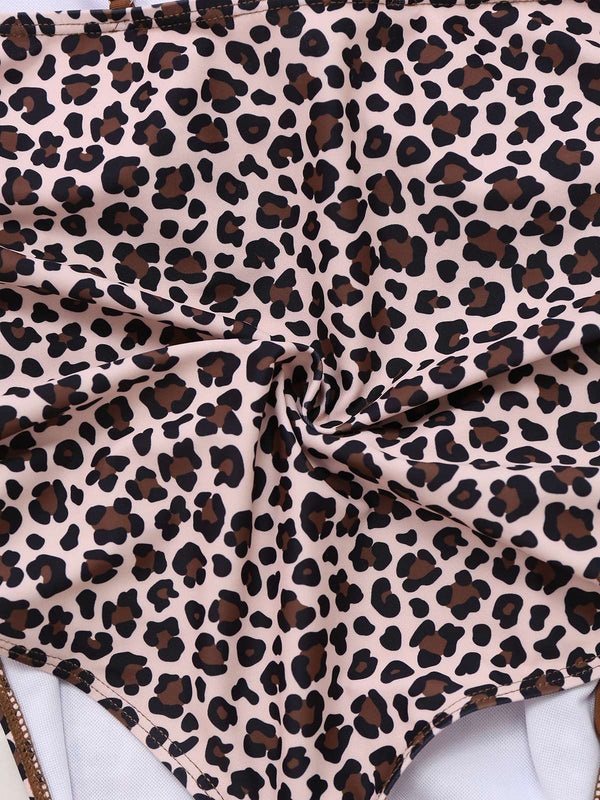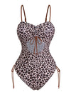 Braun 1940er Leopard Hohl Kordelzug Bademode