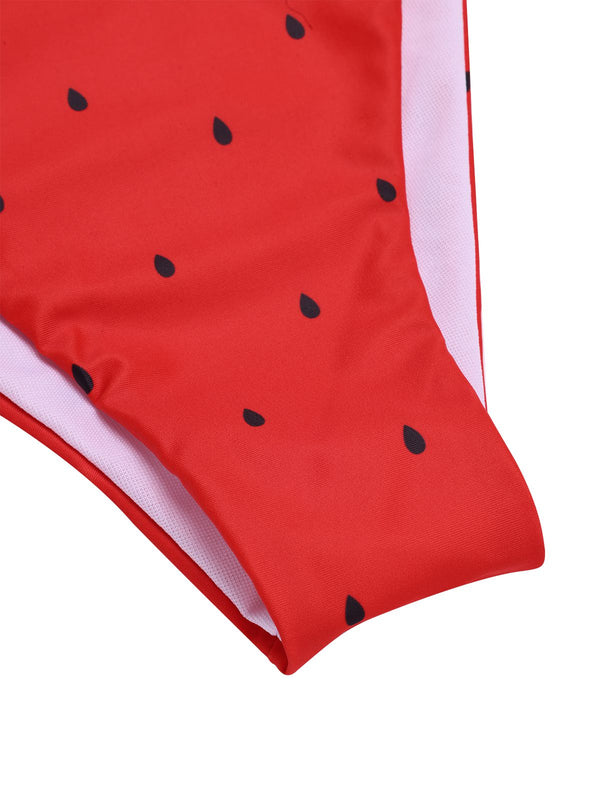 Rot 1960er Wassermelone Bogen Tie Bikini Set