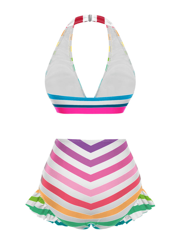 2PCS 1940er Halter Textur Solide Bikini Set & Cover-Up