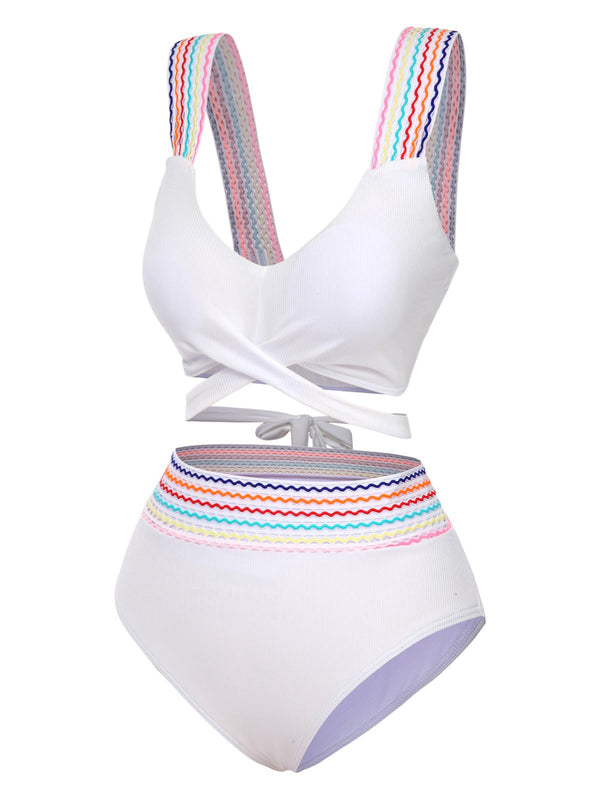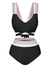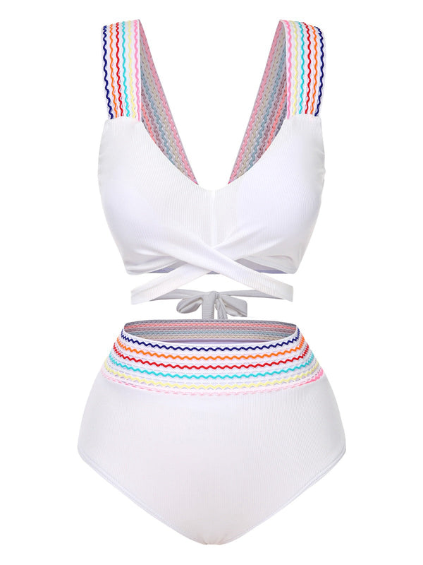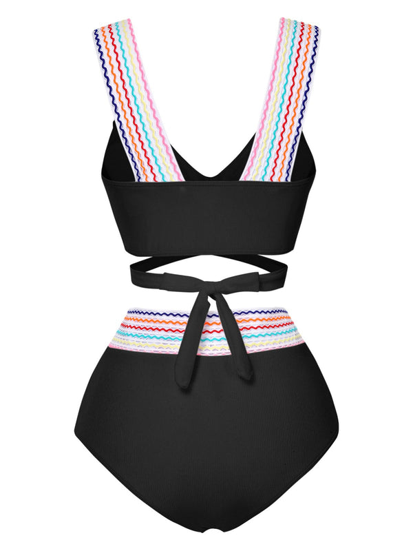 1940er Regenbogen Schnürung Patchwork Gurt Bikini Set