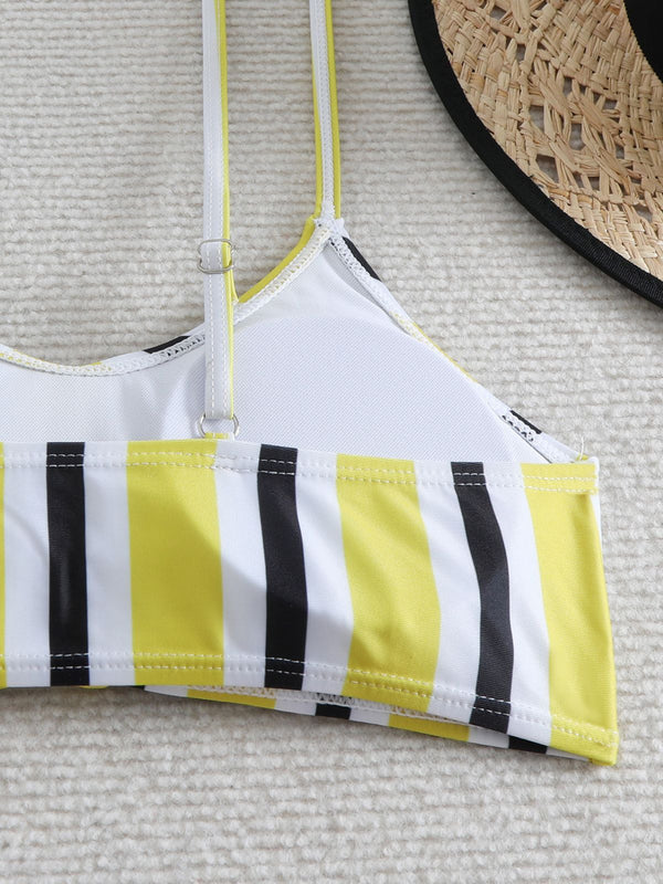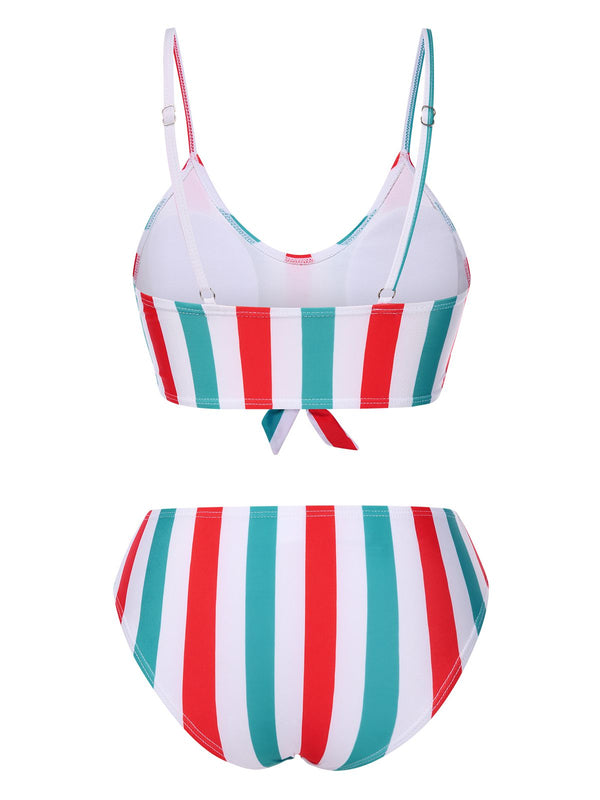 1940er Spaghetti Träger Bogen Kontrast Streifen Bademode